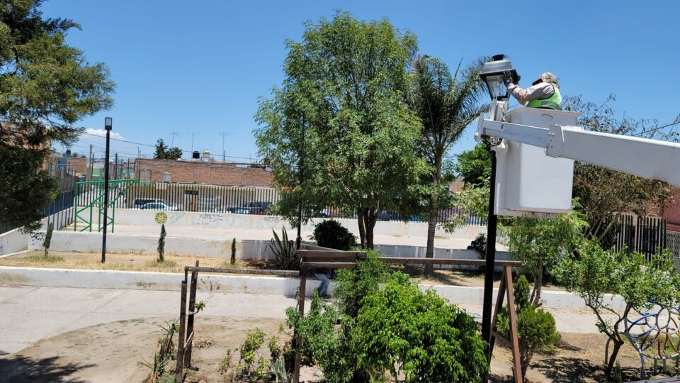 Soledad de Graciano Sánchez; SLP.- La Dirección de Servicios Municipales a través del área de alumbrado público ha intensificado los trabajos para rehabilitar luminarias en diferentes zonas de la localidad, esto como parte del compromiso que mantiene la alcaldesa de Soledad de Graciano Sánchez, Leonor Noyola Cervantes, con la ciudadanía.