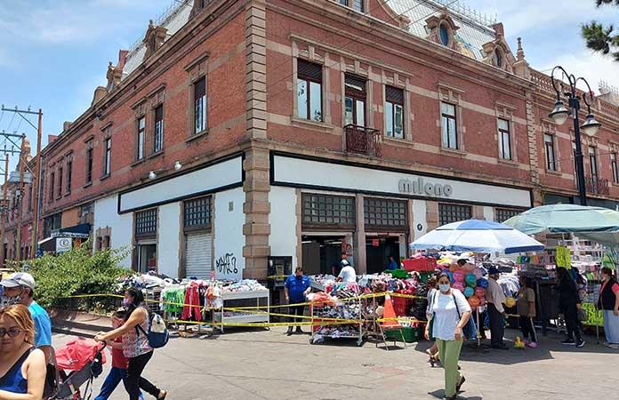 San Luis Potosí, SLP., 17 Mayo 2022.- La tienda de nombre Milano ubicada en el centro de la ciudad en el pasaje Hidalgo fue desalojada este día con el apoyo de la fuerza pública derivado de una orden judicial que promovió el dueño del edificio dado el incumplimiento en el contrato de arrendamiento.
