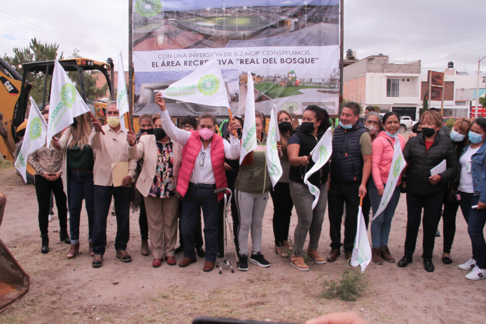 Soledad de Graciano Sánchez; SLP.- La alcaldesa de Soledad de Graciano Sánchez, Leonor Noyola Cervantes, acompañada de integrantes del gabinete municipal e invitados especiales, pusieron en marcha la construcción del parque urbano multifuncional Real del Bosque; obra que favorecerá a por lo menos diez mil quinientos habitantes que residen en la zona.