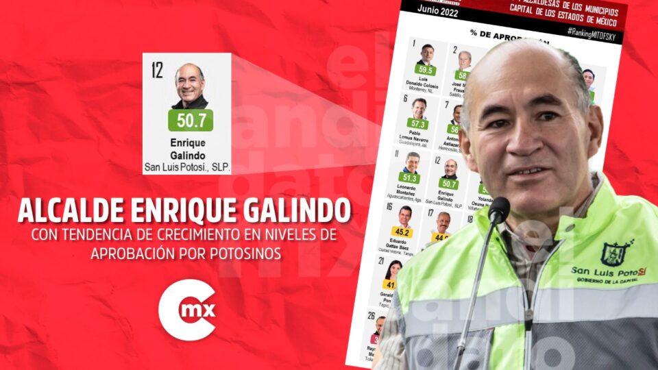 El presidente municipal de San Luis Potosí, Enrique Galindo Ceballos, sigue aumentando los niveles de aprobación en su gestión, de acuerdo a la más reciente encuesta realizada por la empresa Consulta Mitofsky.