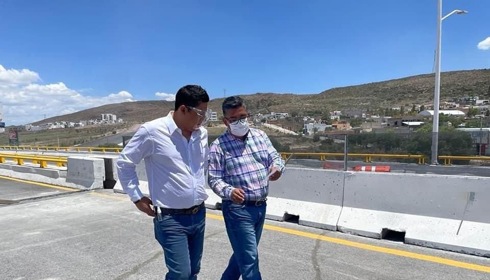 El Mandatario también supervisó el avance de la obra en el tramo de Tierra Blanca a San Juan de Guadalupe, consistente en el recorte de la superficie a fin de retirar las capas dañadas y construcción de base hidráulica y carpeta de concreto asfáltico, además de la terminación del puente ubicado a la altura de las instalaciones de la Feria Nacional Potosina las cuales, cabe señalar, también están siendo remodeladas con un avance superior al 50 por ciento.