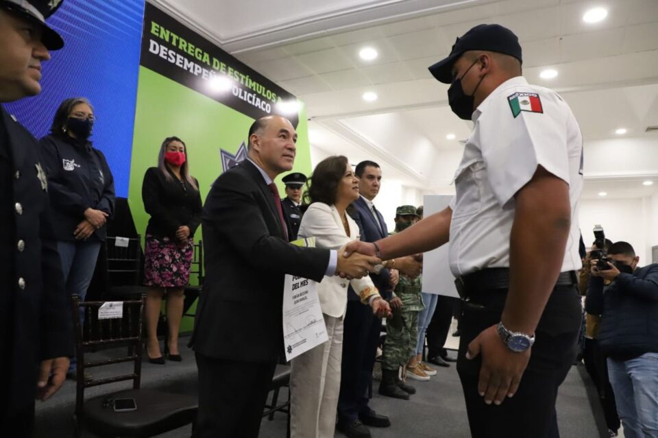 El alcalde Enrique Galindo Ceballos hizo entrega del primer paquete de 244 estímulos económicos mensuales a los elementos de la Secretaría de Seguridad y Protección Ciudadana del Ayuntamiento de San Luis Potosí, con el fin de reconocer los esfuerzos en materia de seguridad pública de los policías capitalinos.