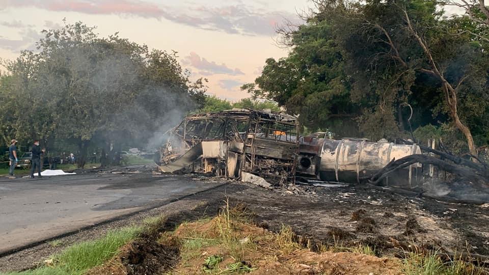 Informes preliminares manifiestan que por lo menos 15 personas perdieron la vida calcinadas esta madrugada al estrellarse el autobús en el que viajaban contra un tanque que se le había desprendido a una pipa