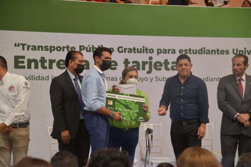 En la entrega de pases de transporte para estudiantes universitarios, el titular de la Secretaría de Comunicaciones y Transportes, Leonel Serrato Sánchez anunció que, en algún momento, este apoyo se extendería a más estudiantes.