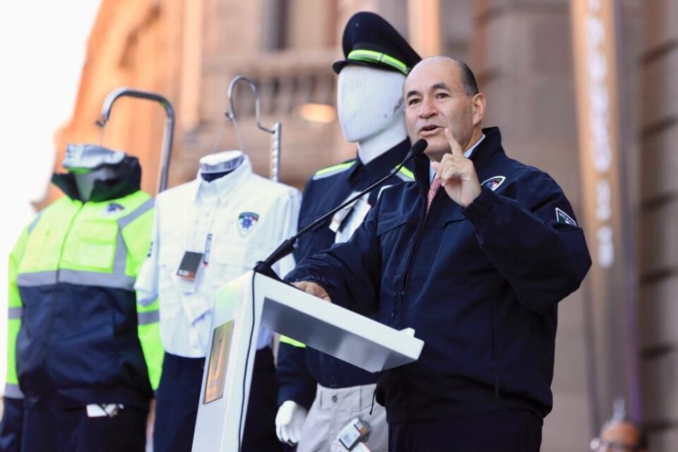 “Había qué dignificar la institución, por eso se dio forma a la Secretaría de Seguridad y Protección Ciudadana y creamos la Unidad de Ciberpolicía, la Unidad de Combate a la Violencia de Género y la de Protección Animal, entre otras acciones. También por ello nos dimos a la tarea de mejorar los salarios y prestaciones del personal y dotarlo de mejor equipo y como parte de esta tarea hoy entregamos nuevos uniformes, de la mejor calidad que hay en el mercado”.