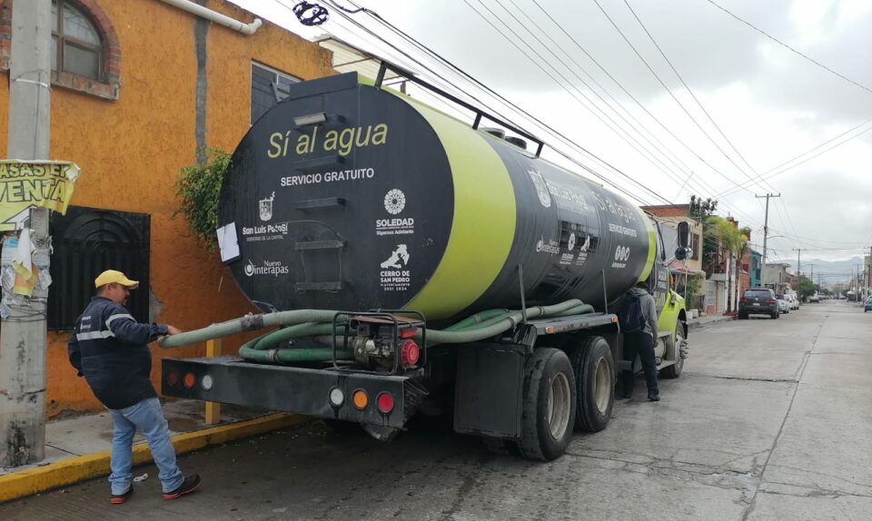 SLP.-La coordinación de pipas del Nuevo Interapas contabilizó la entrega de 42 millones 980 mil litros de agua en la Zona Metropolitana. Cantidad de líquido que se incrementó durante el fin de semana largo debido a la falla de El Realito.