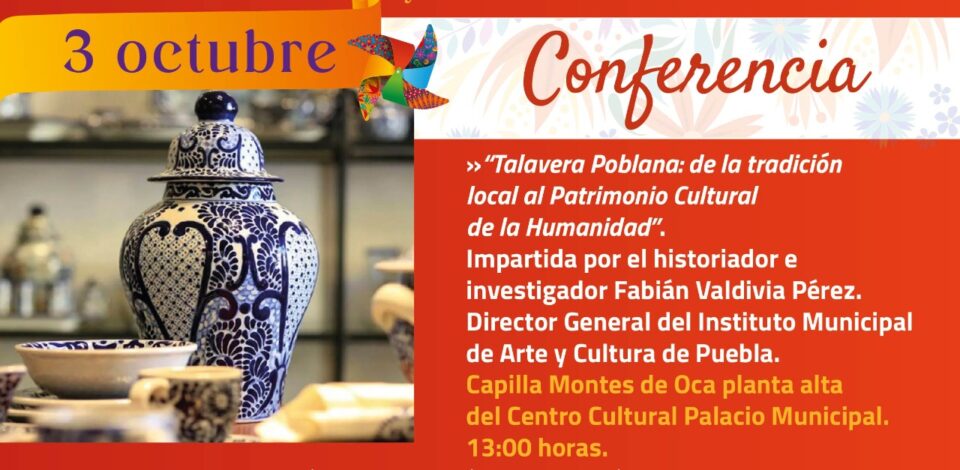 El historiador e investigador Fabián Valdivia Pérez, se presentará dentro de las actividades de la V Muestra Internacional de Folklore y Artes Tradicionales ya que expondrá la conferencia: “Talavera poblana: de la tradición local al Patrimonio Cultural de la Humanidad”, a desarrollarse dentro de la capilla Montes de Oca del Centro Cultural Palacio Municipal, este lunes 3 de octubre a las 13 horas.