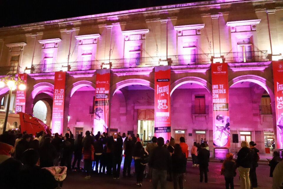 El evento para conmemorar el “Día Internacional de la Lucha contra el Cáncer de Mama” culminó con el encendido de luminarias en color rosa, de la fachada de Palacio Municipal.