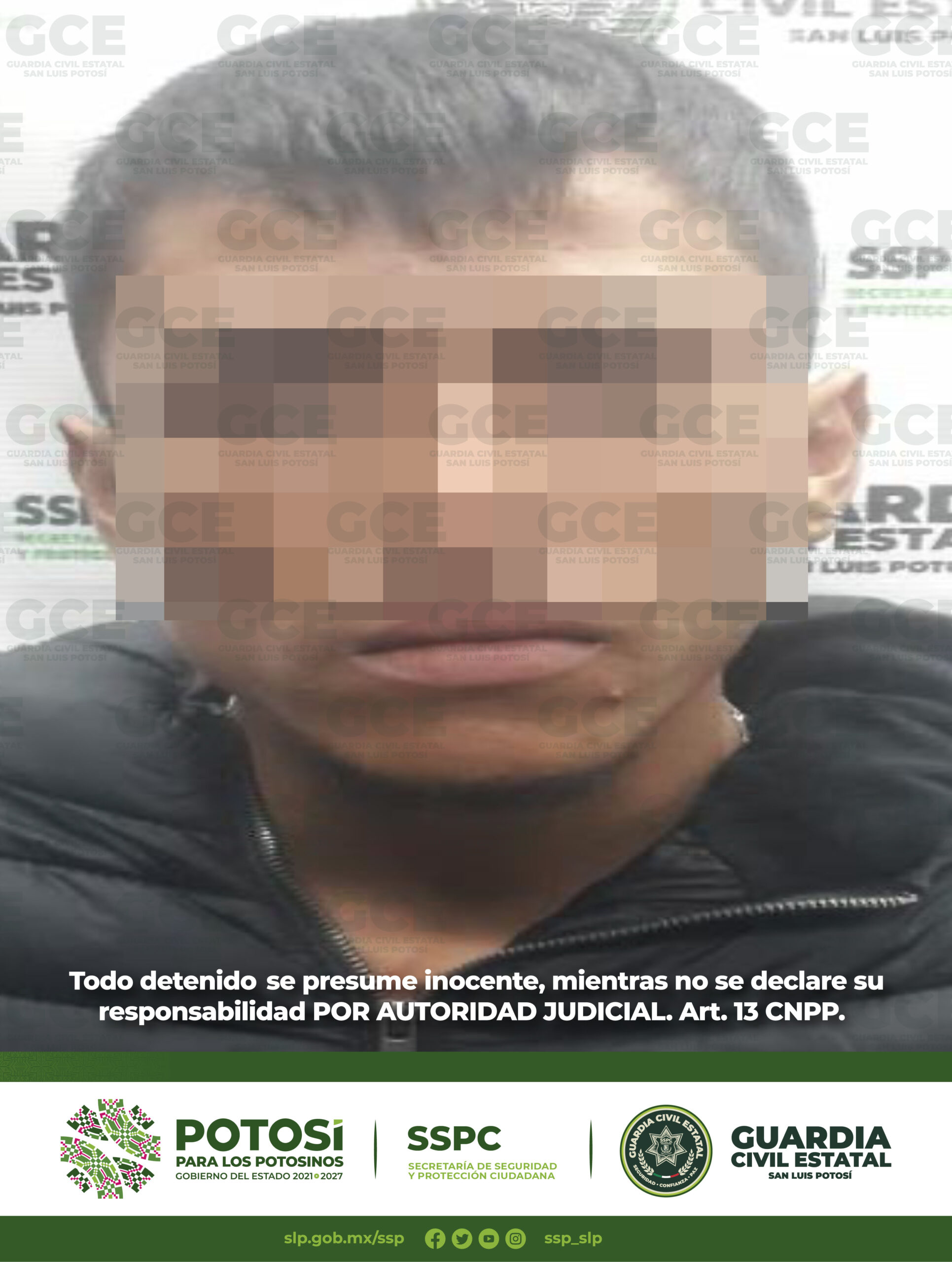 potosina; los elementos de la Guardia Civil Estatal (GCE) detuvieron a Hugo de 20 años de edad,