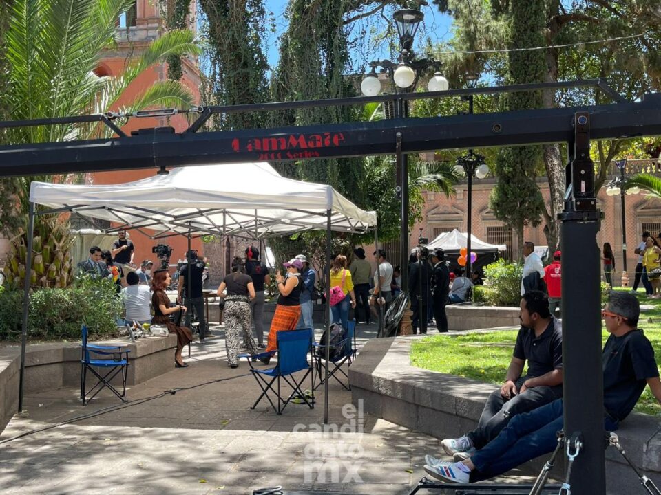 Comenzaron a grabar y llamó la atención de ciudadanos potosinos quienes estaban alrededor observando cómo se realizan las grabaciones y esperando poder tomarse fotografías con el talento de esta filmación.