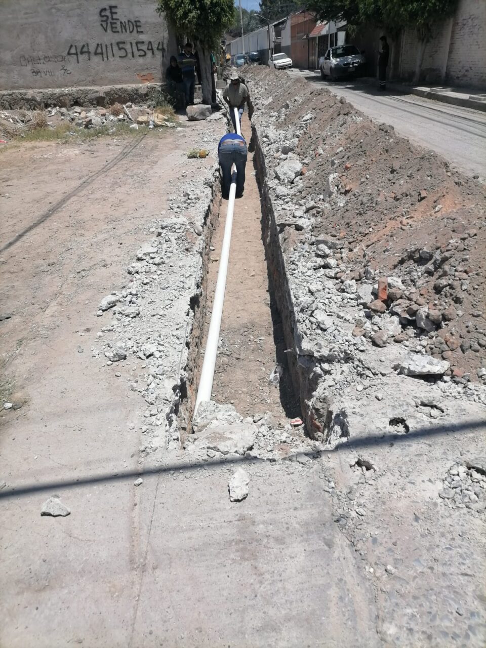 SLP.- El “Plan Emergente de Abasto de Agua” para la Zona Metropolitana continúa, y una de las acciones de este programa es la reposición de una línea principal de agua potable para la calle Azteca Norte en el barrio de Tlaxcala, donde históricamente sus habitantes han sufrido por la falta del vital líquido.