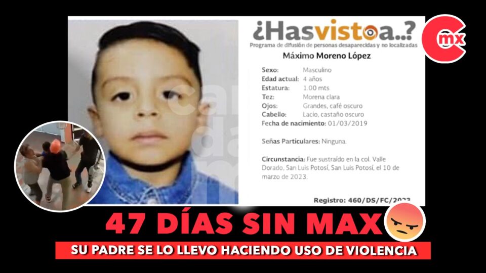 El pasado 10 de marzo, el niño Max Moreno López, de 4 años de edad, fue sustraído por su padre de forma violenta de una vivienda en la colonia Valle Dorado, donde permanecía con sus abuelos.