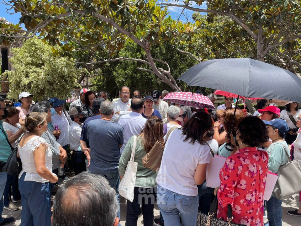 Trabajadores jubilados de diferentes dependencias de Gobierno como Oficialía Mayor, SEDARH, Finanzas, entre otras, hicieron un llamado al Gobernador Ricardo Gallardo Cardona para pedir pague las jubilaciones y los pagos por años de servicio que les deben desde hace más de 9 meses mediante una manifestación afuera de Palacio de Gobierno.