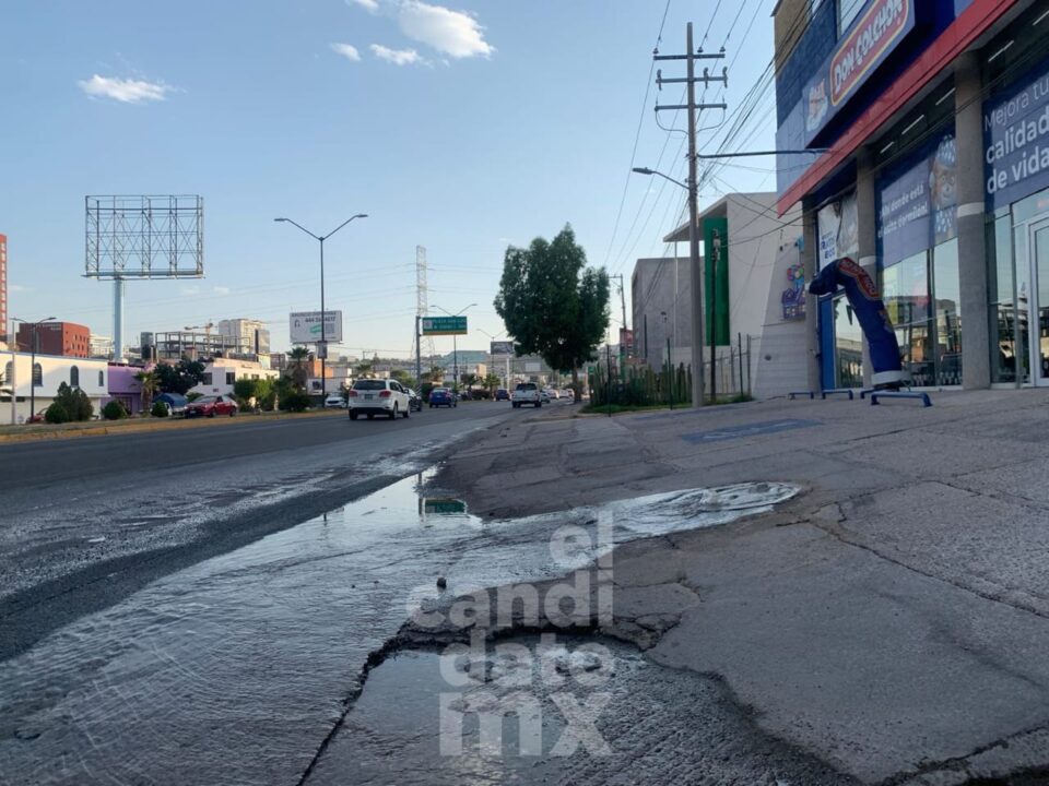 Locatarios de la zona de lomas reportan fuga de agua sobre avenida Salvador Nava, que proviene de una alcantarilla, pues indican que debido a esta fuga las calles comienzan a oler mal e inundar la calle.
