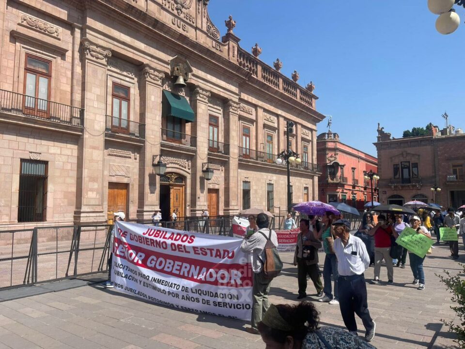 Después de más de tres idas a palacio de gobierno para pedir sus pagos correspondientes de finiquito y no tener una respuesta por parte de las autoridades correspondientes jubilados de gobierno del Estado se manifiestan en el centro histórico.