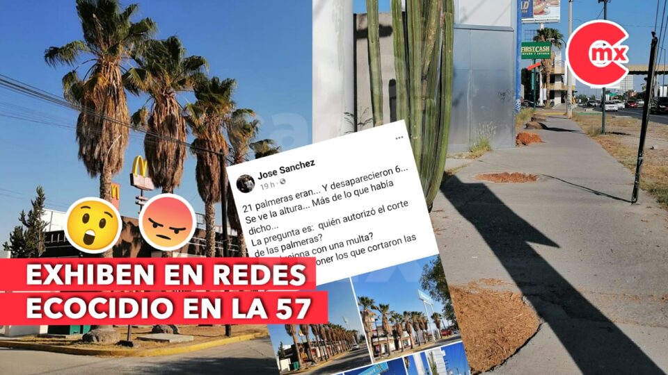 En redes sociales, un usuario reportó la tala de 6 de 21 palmeras que estaban frente a Walmart y Mc Donals de la carretera 57.
