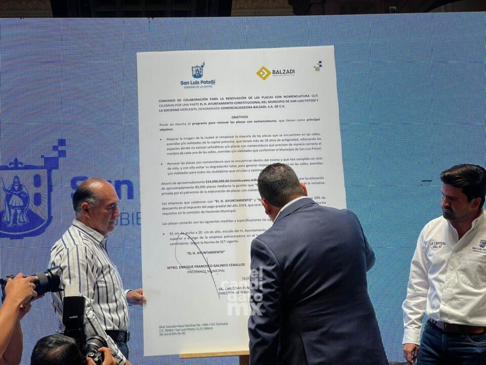 El Ayuntamiento de San Luis Potosí firmó el convenio para restaurar la nomenclatura de la capital potosina que se encuentra deteriorada.