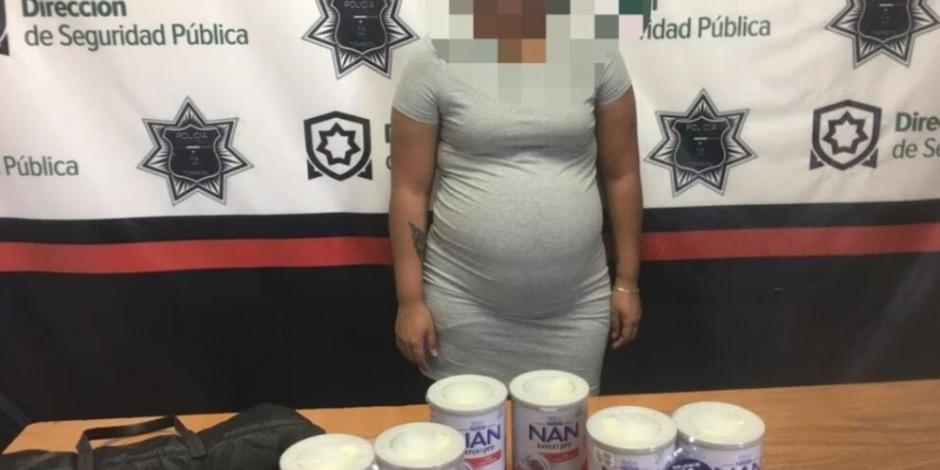 En Torreón una mujer con un avanzado embarazó fue detenida luego de que robara varias latas de fórmula lactea para bebé.