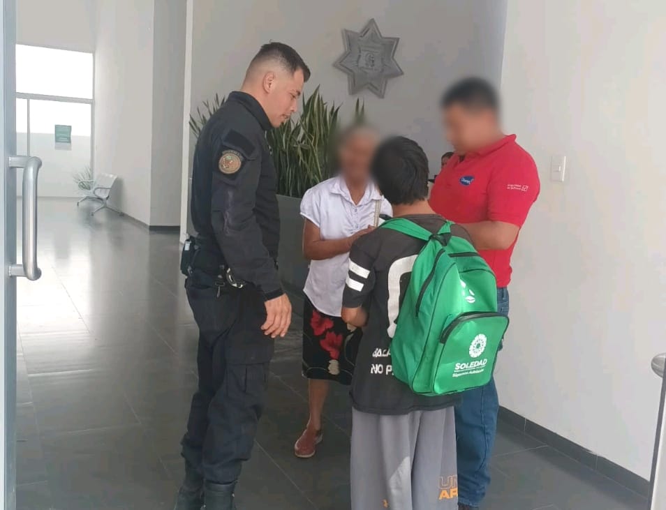 En acciones de cercanía y de atención a la ciudadanía, agentes de Seguridad Pública de Soledad de Graciano Sánchez reunieron a un menor extraviado con su familia en la comandancia central de la corporación, acto que forma parte del operativo “Por Un Soledad Seguro”.
