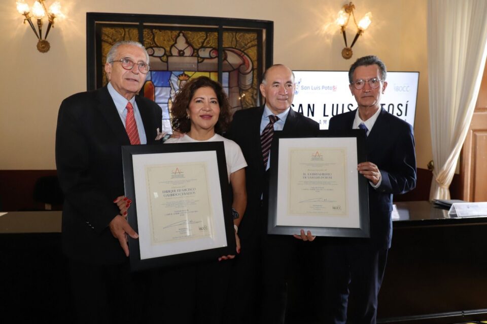 Este jueves, el Alcalde Enrique Galindo Ceballos, a nombre del Gobierno Municipal de San Luis Potosí, recibió dos nuevos reconocimientos: “Ciudad Árbol del Mundo” por la ONU y “San Luis Potosí, Capital Americana de la Cultura”, con la presencia de Gabriela López Damián, Directora de Árboles y Ciudades Reforestamos México, y de Xavier Tudela i Penya, presidente del Bureau Internacional de Capitales Culturales, organización que desde de 1998 entrega el galardón como Capital Americana de la Cultura, que tiene por objetivo promover a nivel internacional los tesoros del patrimonio material e inmaterial de las ciudades.