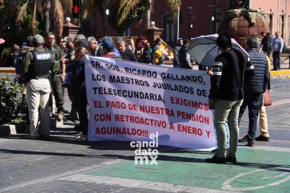 Un grupo de maestros de telesecundarias se manifestaron exigiendo el pago atrasado de su pensión.