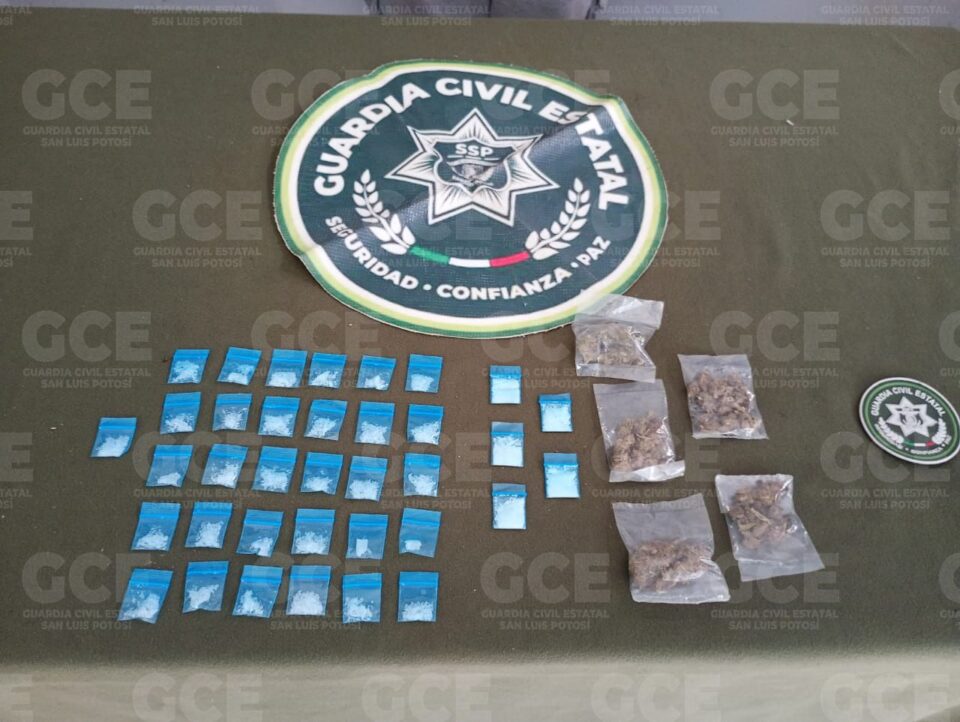 Como resultado de las acciones del Plan Integral de Seguridad que se mantiene de forma efectiva en la Región Huasteca, elementos de la Guardia Civil Estatal (GCE), detuvieron a supuestos miembros de la delincuencia, con dosis de las drogas conocidas como “cristal”, cocaína y marihuana.