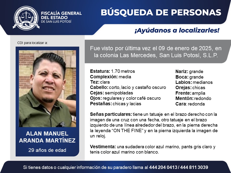 -Alan Manuel Aranda Martínez (29 años) visto por última vez el 09 de enero de 2025