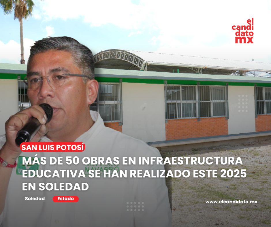 Entre aulas didácticas, techados, bardeados y rehabilitaciones, este 2025, se han iniciado más de 50 obras en las distintas escuelas del municipio, el edil, afirmó que aún se esperan realizar más en lo que resta del año para beneficiar a las infancias soledenses, “Todavía tenemos obras educativas por arrancar, por inaugurar… Y estos tres meses que nos restan del año fiscal lo vamos a aprovechar al máximo”, enfatizó.