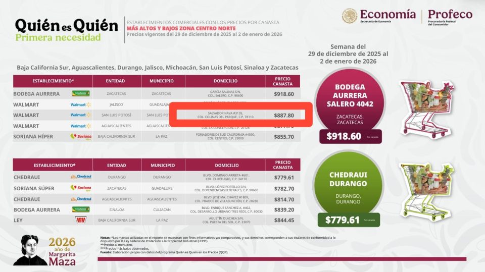 De acuerdo al último análisis del programa “Quién es Quién en Primera Necesidad” de la Procuraduría Federal del Consumidor (Profeco), el Walmart ubicado en Salvador Nava tiene una de las canastas básicas con mayor costo en México.