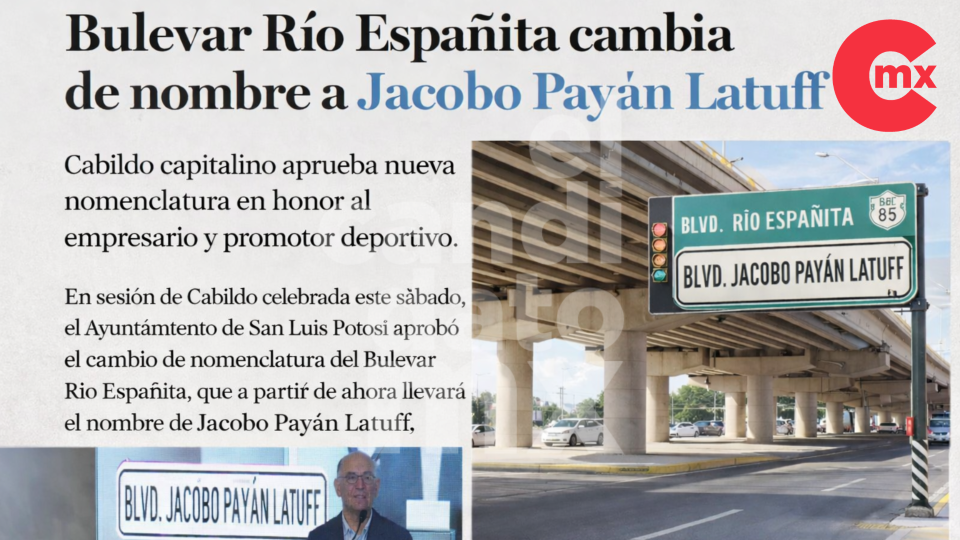 En sesión de Cabildo celebrada este sábado, el Ayuntamiento de San Luis Potosí aprobó el cambio de nomenclatura del Bulevar Río Españita, que a partir de ahora llevará el nombre de Jacobo Payán Latuff, en reconocimiento a su trayectoria como empresario e impulsor del deporte en la entidad.