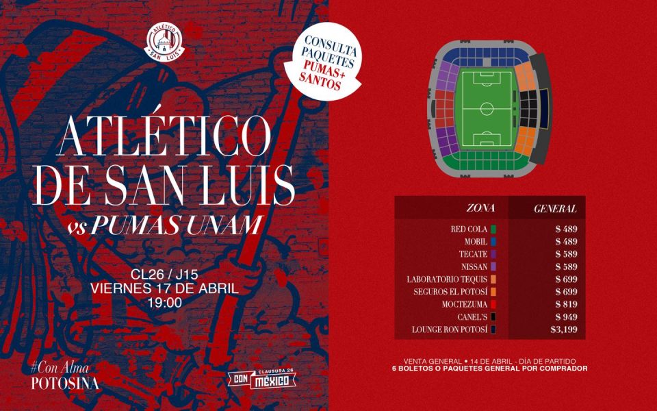 El Atlético de San Luis enfrenta un duelo clave en la jornada 15 del Clausura 2026, cuando reciba a Pumas de la UNAM en el Estadio Alfonso Lastras, en un partido donde está obligado a sumar de a tres si quiere seguir con aspiraciones de clasificar a la liguilla.