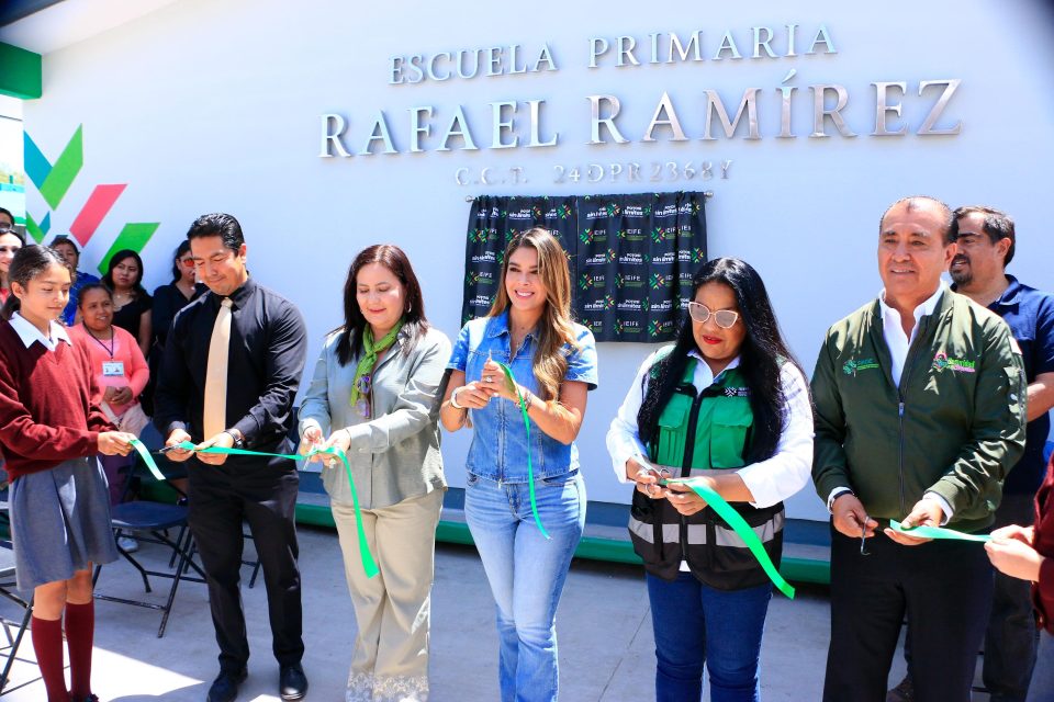 Con apoyo de gobierno del estado, se entregaron 6 aulas educativas en la primaria Rafael Ramírez y se puso en marcha un techado escolar en la Secundaria No.90
