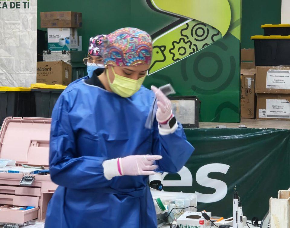 Desde este espacio cercano a las familias, se instalaron decenas de camillas equipadas con unidades odontológicas portátiles, lámparas de fotocurado, compresores, instrumental de diagnóstico, ultrasonidos para limpieza, y tecnología especializada para procedimientos como extracciones, obturaciones y profilaxis, lo que permite a los casi 30 odontólogos ofrecer servicios de alta calidad a decenas de pacientes por día, en condiciones dignas y seguras.