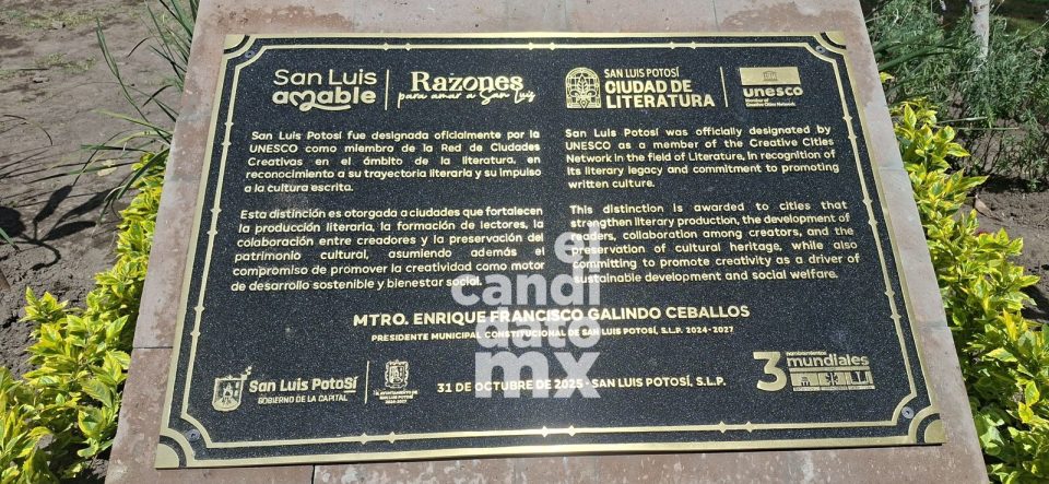 La ciudad de San Luis Potosí formalizó su nombramiento como Ciudad Creativa de la Literatura con la develación de una placa conmemorativa, distinción otorgada por la UNESCO.