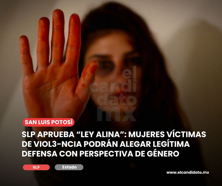 SLP aprobó por unanimidad una reforma al Código Penal inspirada en la “Ley Alina”, para que mujeres víctimas de violencia que se defiendan de sus agresores sean juzgadas con perspectiva de género, considerando antecedentes de abuso, miedo y contexto previo, y no solo el hecho inmediato.